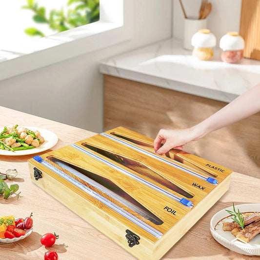 Bamboo Cling Film Cutter, Kitchen Food Wrap Dispenser, Sliding Cutter